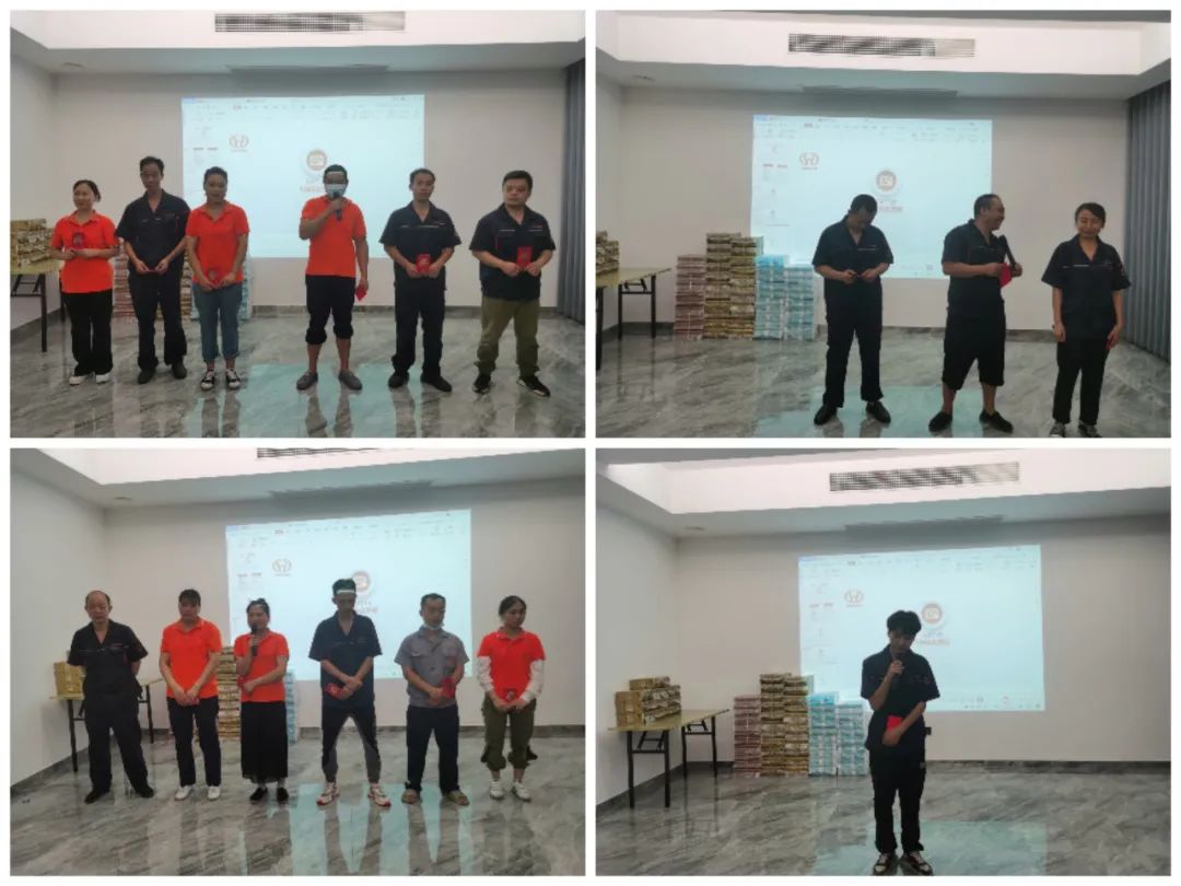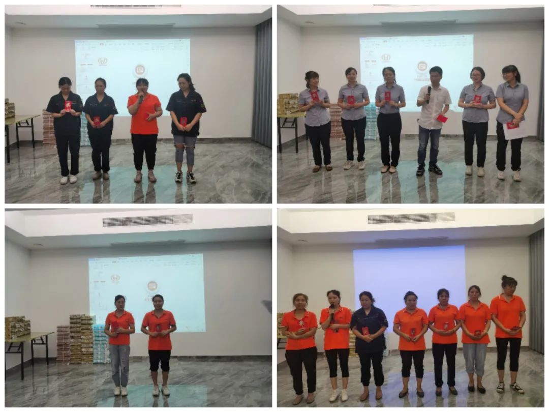 6月是收獲的季節(jié),在公司全體員工辛勤地付出及努力下,6月份銷售額同比增長了40%!拼搏的是汗水,付出的是努力,收獲的是喜悅!公司一共有九個小組,按工分績效的排名首先確定了小組名次以及小組內的名次和獎金。員工按名次依次上臺從組長那里領取了屬于自己的那份紅包榮譽,并合影留念!