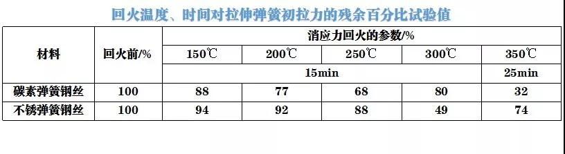消應(yīng)力回火的溫度和保溫時(shí)間對(duì)拉伸彈簧的初拉力的影響: